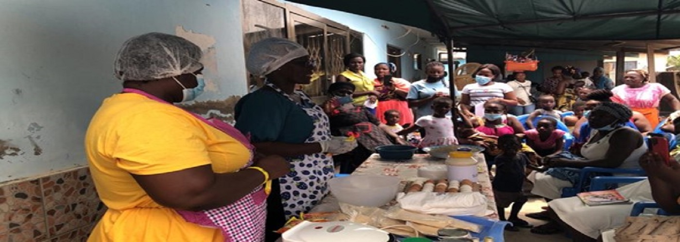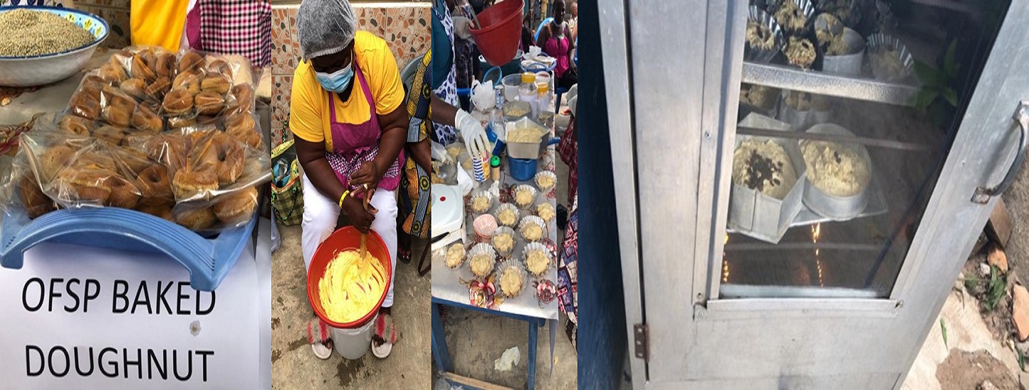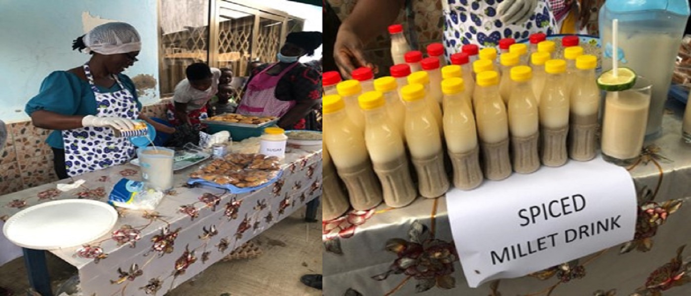 The Department of Agriculture organized a food demonstration on utilization of local foods and value addition as an alternative way of generating income and improving household nutrition for a women’s group at Adjei Kojo. The products demonstrated were millet drink baked orange flesh potato cake and doughnut. 37 females made up of processors, marketers and staff participated in the demonstration.